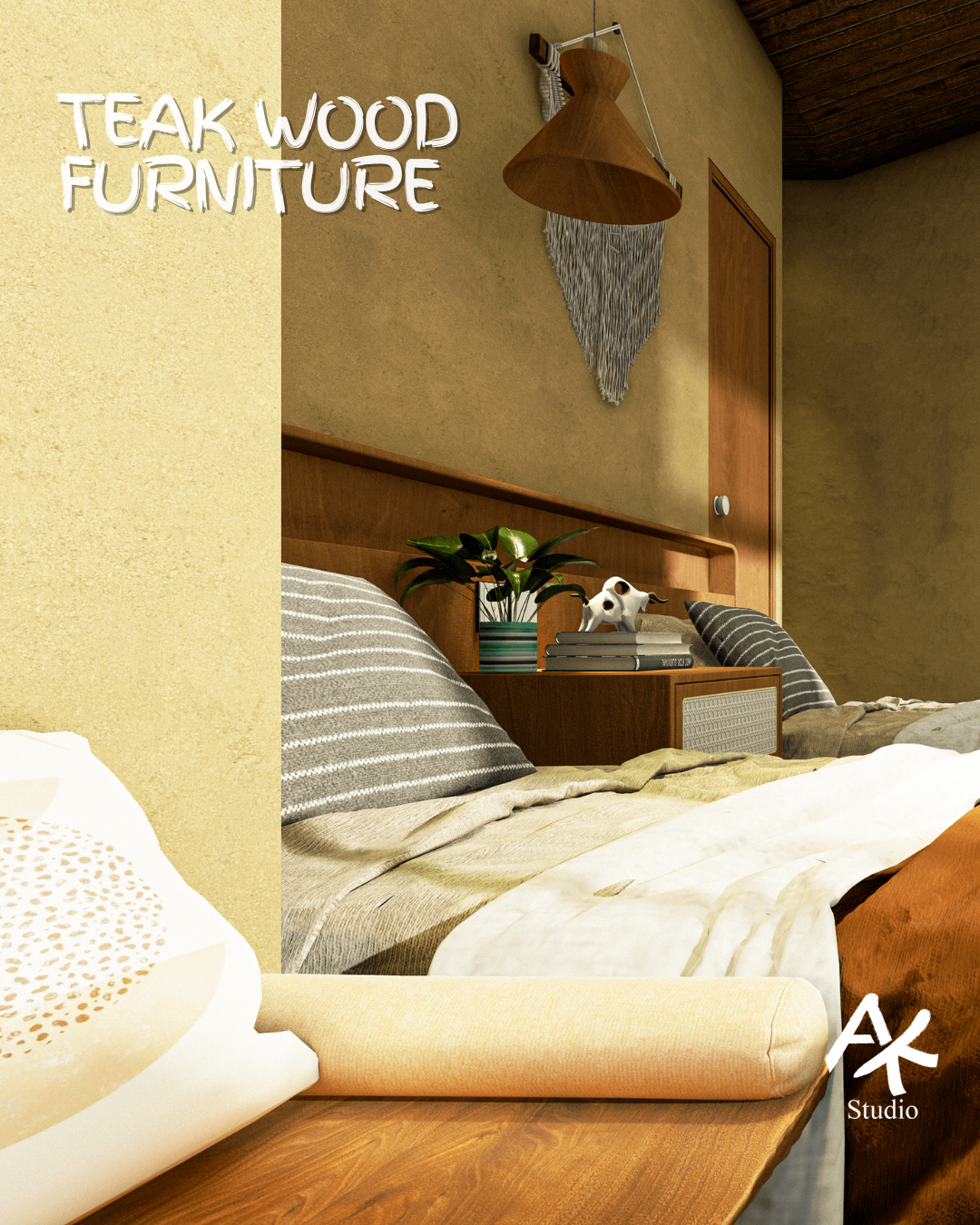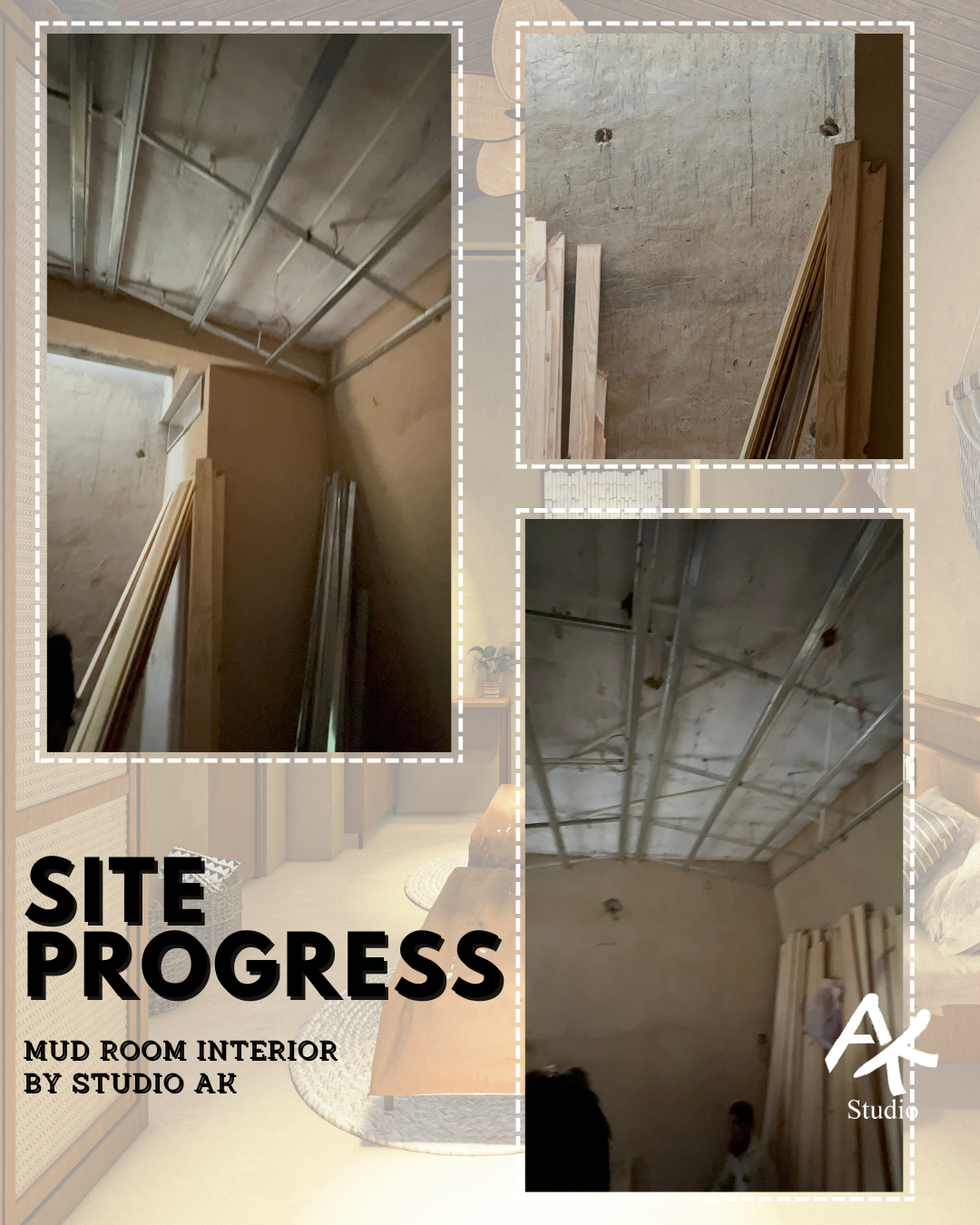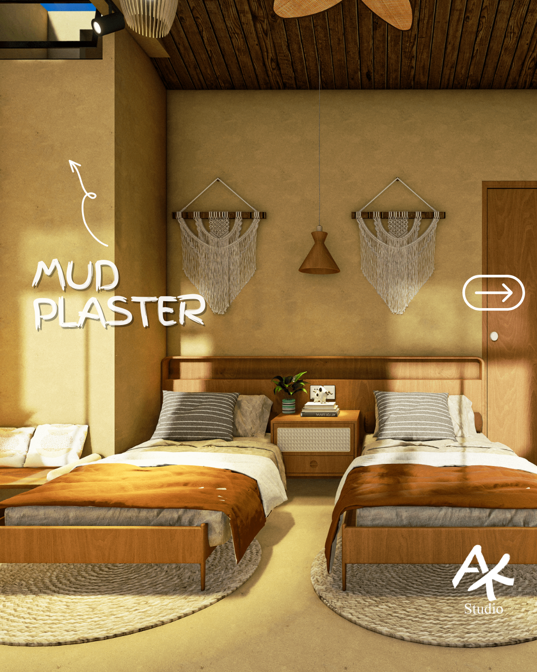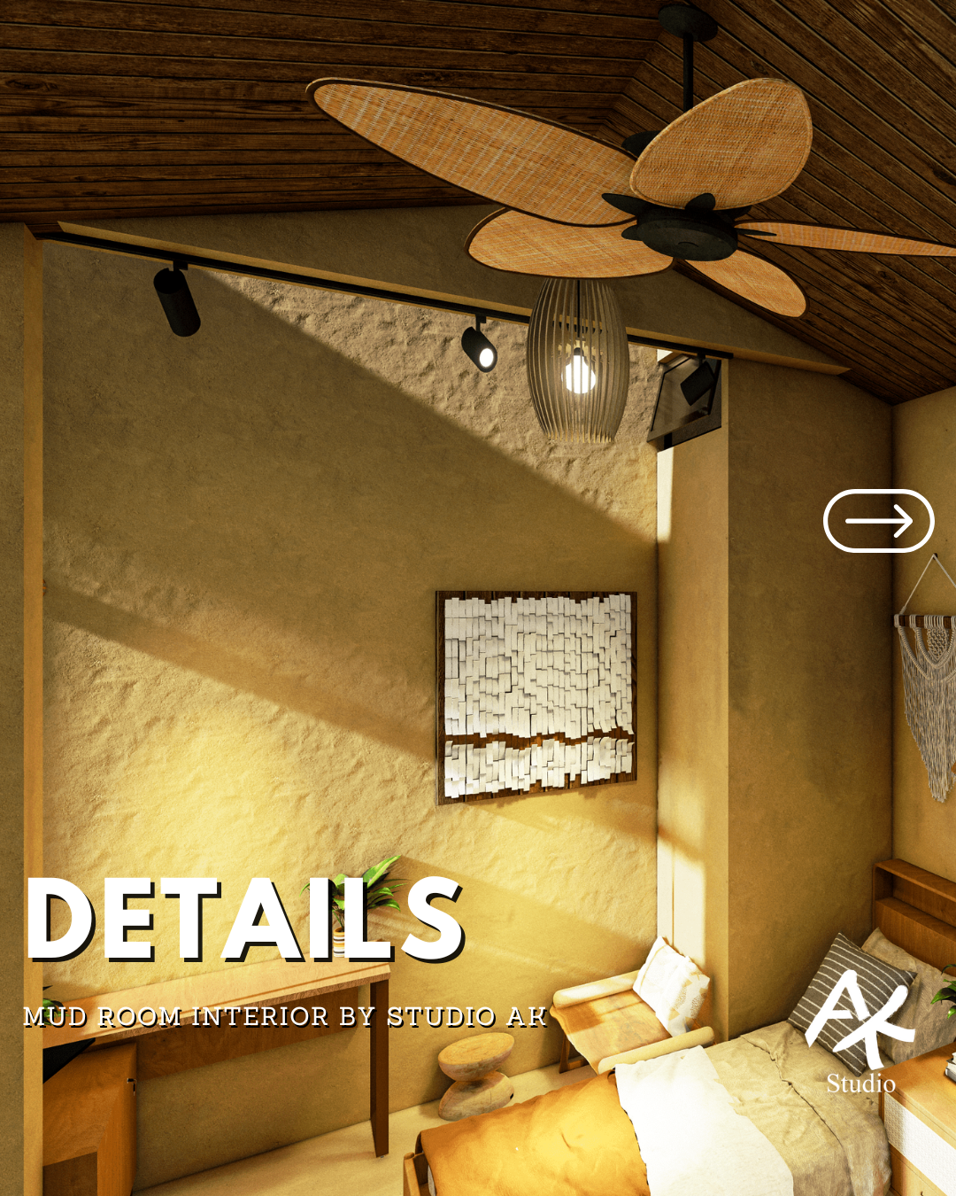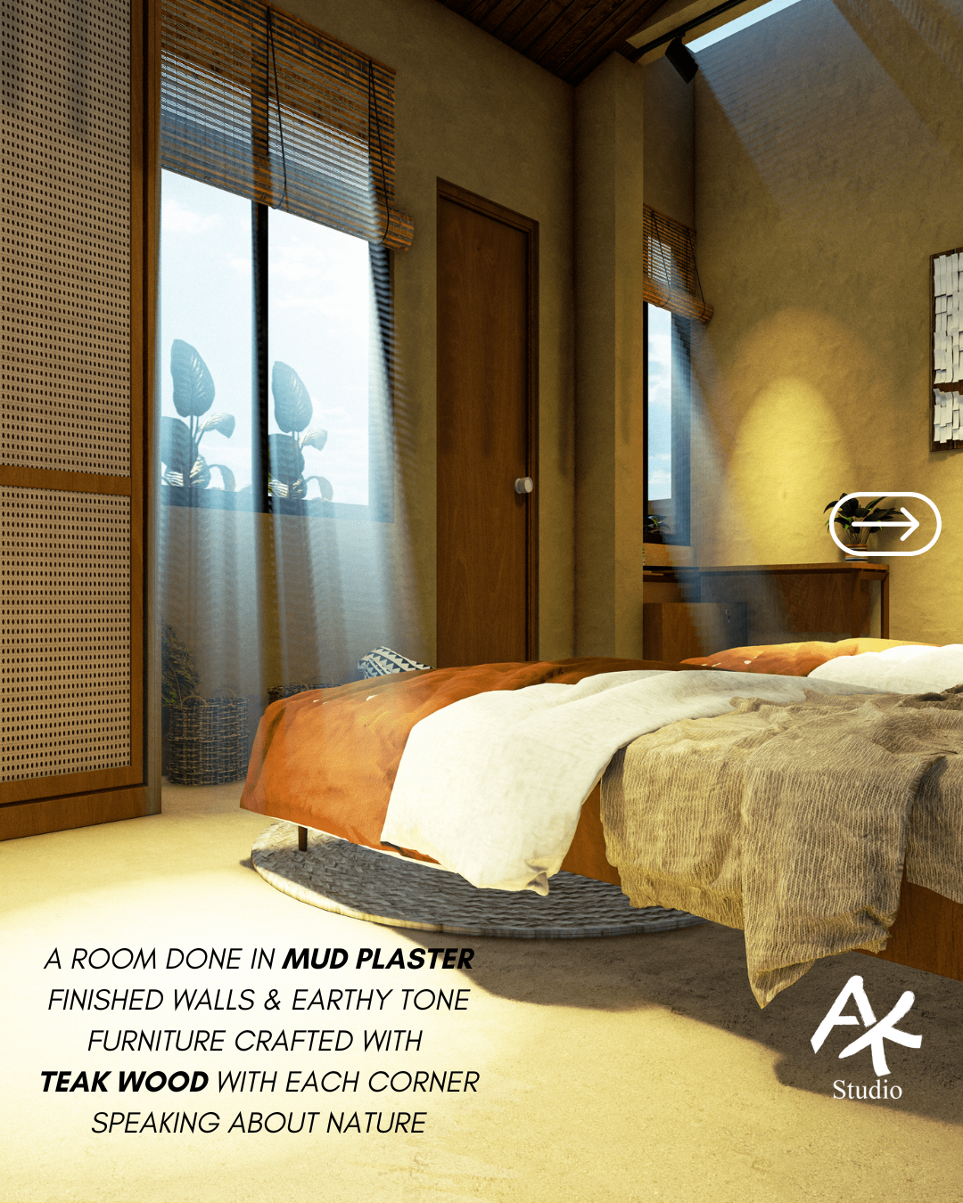 This cozy mud room interior by Studio AK celebrates raw textures, warm tones, and the calming embrace of mud plaster walls and handcrafted teak wood furniture 🌿